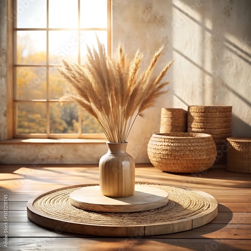 pampas, grass, vase, decor, interior, home, rustic, table, window, light, wooden, basket, still life, decoration, style, design, room, natural, dried