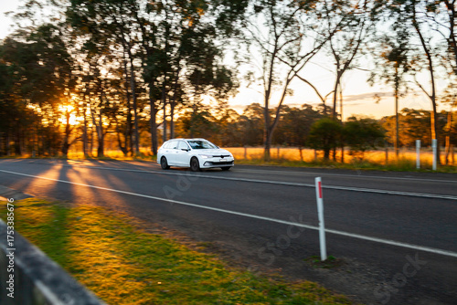 panning, image, white, car, driving, past, sealed, rural, country, road, sunset, light, tree, gold, warm, explore, remote, gum, australia, adventure, travel, motoring, golden light, drive, motion, vehicle, movement, travelling, eucalyptus, gum tree, journey, speed, roadside, backlit, trip, late, discover, insurance
