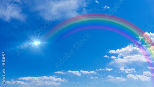 Panorama background of rainbow-covered blue sky and sun_49