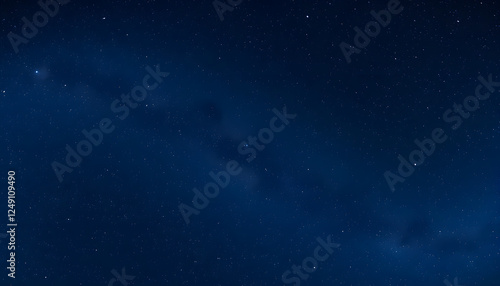 Panorama blue night sky milky way and star on dark background.Universe filled, nebula and galaxy with noise and grain.Photo by long exposure and select white balance.Dark night sky, isometry. with w
