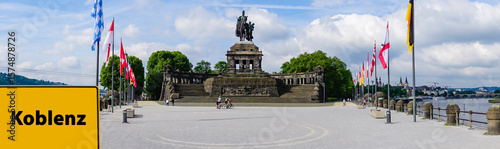 Panorama Deutsches Eck mit Ortsschild Koblenz