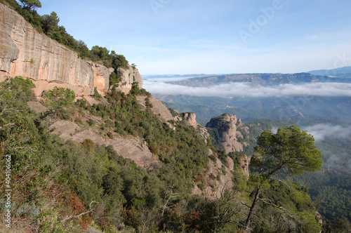 Panorama of the forests and mountains of La Mola, in Catalonia, in the province of Barcelona (Spain). Next to Montserrat. Catalonia, El Vallès
