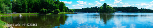 Panorama of the Upper Tsaritsinsky pond in the park in Moscow