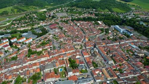 Panoramic aerial of the old town of the city Ligny-en-Barrois in France on a sunny noon in summer