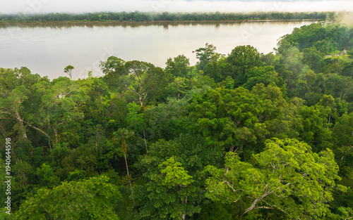 amazon, rainforest, jungle, peru, morning, sunrise, mist, fog, cloud, river, basin, tropical, forest, canopy, tree, foliage, green, biodiversity, wildlife, nature, ecosystem, habitat, wilderness, landscape, scenery, panoramic, aerial, drone, exploration, adventure, travel, tour tourism, remote, pristine, natural, environment, conservation, flora, fauna, bird, river bank, water, sky, humid, oxygen