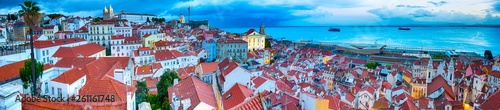 Panoramic Image of The Oldest Alfama District in Lisbon in Portugal. Townscape Scenery Was Made During a Blur Hour.Panoramic Image
