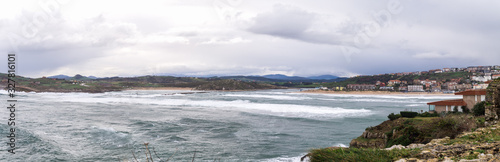 Panoramic photo of the bay of Suances in storm day with strong w