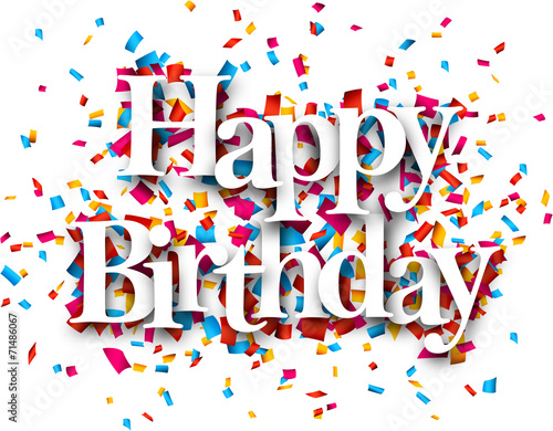 happy birthday, confetti, holiday, surprise, celebration, carnival, paper, happiness, birthday, party, celebrate, banner, signs, offer, reduction, three-dimensional, background, vector, cheap, label, price, store, bright, retail, symbol, stock, service, shopper, clearance, illustration, web, purchase, information, blue, yellow, red, magenta