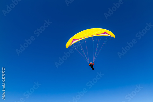 paraglider flying high in the sky