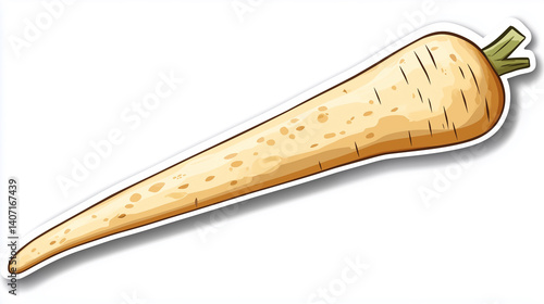 Parsnip Sticker, Long Tapered Parsnip with Light Tan Skin, Farm-Fresh and Earthy Vegetable Aesthetic, White Border, Isolated on White Background, Generated AI