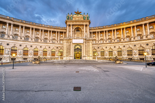 Part of the Hofburg and the Heldenplatz in Vienna at dusk