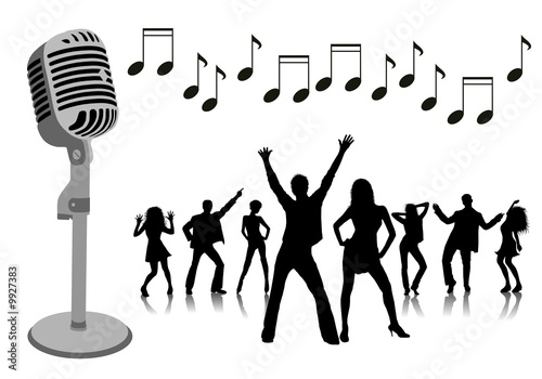 microphone, microphone, music, amplifier, silhouette, man, woman, dance, celebrate, party, disco, karaoke