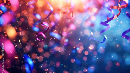 Party Poppers and Streamers with blurred party scene background, copy space, cinematic
