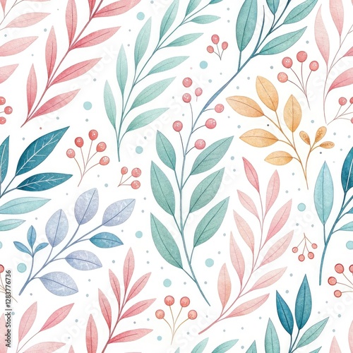 Pastel Floral Seamless Pattern: Watercolor Leaves