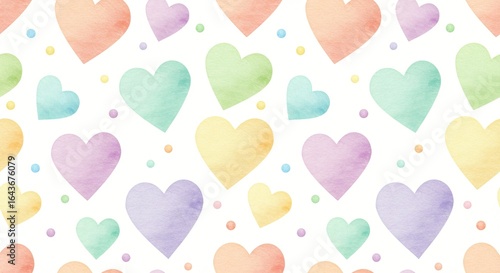 Pastel hearts pattern with a variety of different colors on a white backdrop for a loving or whimsical design aesthetic.