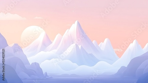 mountain, abstract, winter, quiet, peaceful, art, serene, snowy, colours, digital, high-coloured, cloud, sunrise, landscape, pastel, sky, colours, calm, peak, simple, dreamy, light, dreamlike, subtile, geometric, nature, gentle, design, soft, illustration, vale, style, gradient