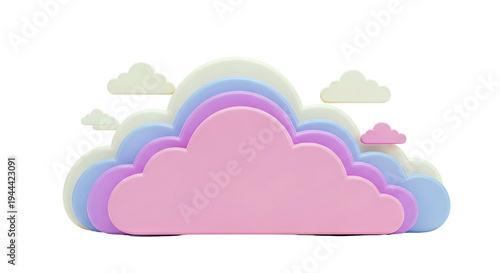 cloud, pastel, rainbow, colourful, cute, illustration, decoration, sky, dreamy, whimsical, fantasy, layer, stack, pink, purple, blue, cream, soft, minimalist, graphic, design, pattern, abstract, dream, childlike, sweet, theme, sweetness, aethereal, render, three-dimensional, studio, isolated, clean, background