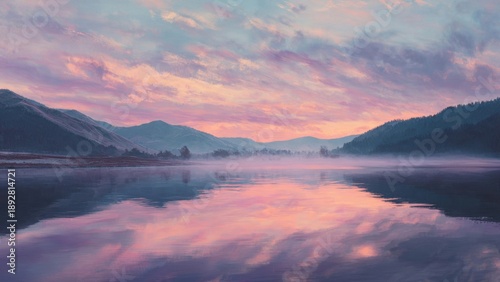 lake, sunrise, pastel, mountain, calm, tranquil, peaceful, nature, landscape, dawn, water, sky, cloud, morning, scenic, beauty, mist, serene, idylli, dreamy, colours, purple, pink, blue, quiet, untouched, wilderness, environment, vista, background, desktop, image, inspiration, zen, mindfulness, meditation, escape, get-away