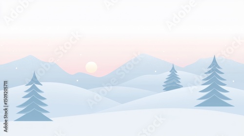 flat, winter, hill, quiet, snow, serene, design, mountain, landscape, style, tree, delicate, light, pastel, illustration, sunrise, graphic, evening, decorative, morning, sunset, peaceful, nature, subtile, art, colours, background, simple