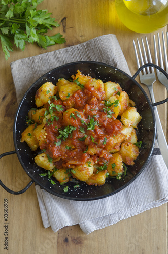 potato, sauce, tomatoes, spanish, culture, parsley, cookery, vegetable, prepared, spice, herb, herb, food, fresh, chili, meal, vegetarian, vertical, up high, table, lunch, dine, dinner
