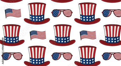 patriotic, american, us, flag, 4th july, silk hat, sunglasses, graphic, festive, holiday, celebration, vector graphics, shades, 4th july