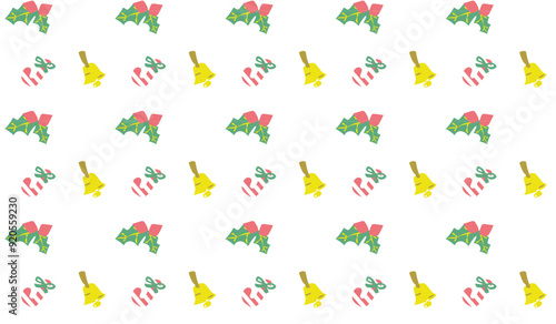 Pattern for the Christmas festival, pine leaves, Christmas flowers, bells and candies