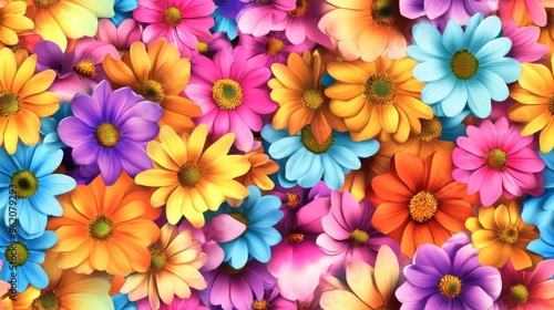 Pattern of many colorful flowers