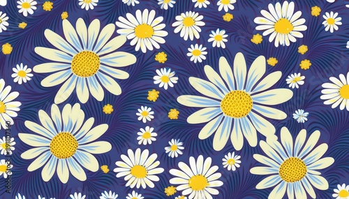 flower, daisy, pattern, floral, nature, spring, chamomile, summer, seamless, flower, chamomile, plant, wallpaper, blossom, design, bloom, illustration, vector, yellow, decoration, art, beauty, texture, meadow
