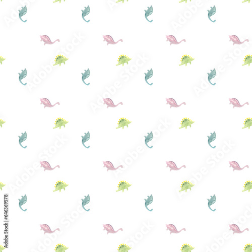 pattern with dinosaurs drawn in watercolor, picture of prehistoric creatures drawn by hand