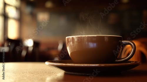 pause. A close-up view of a coffee cup with steam rising, set against a blurred, cozy backdrop. bar promotions, beverage menus, designed for food & beverage menus and cafe branding.