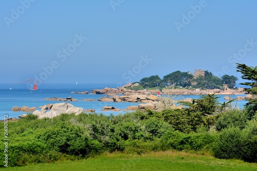 Paysage de la côte de granit rose entre Trégastel et Ploumanach en Bretagne. France