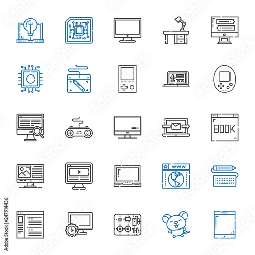 icon, set, vector, tablet, mouse, component, computer, browser, keyboard, laptop, screen, console, graphic, central processing unit, monitor, desk, illustration, symbol, web, signs, design, technology, digital, cyberspace, isolated, device, element, business, flat, object, black, modern, communication, background, white, mobile