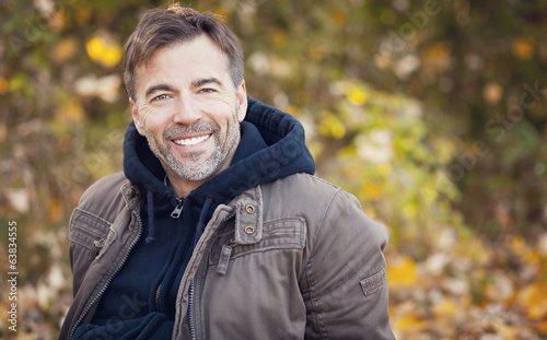 healthy lifestyle, 50s, male, man, smiling, one person, happiness, casual attire, cheerful, closeup, human face, real people, adult, beard, park, glamour, green, contemporary, lifestyle, outdoors, forest, brown hair, portrait, content, human teeth, elegance, confidence, satisfaction, attitude, fashion model, masculinity, toothy smile, funky, young adult, joy, cool, aspiration, success, energy, vitality, caucasian, looking, shirt