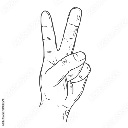 Peace hand gesture line icon. Sign of victory. Hand drawn sketch