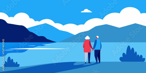 elderly, couple, lakeshore, mountain, view, retirement, peaceful, serenity, serene, calmness, calmness, well-being, togetherness, planning, independence, peace, explore, picture, discovery, relaxing, tranquil, idylli, age, senior, relaxation, sunrise, joy, journey, ageing, horizon, freedom, graphic, scenery, calm, companionship, image, picturesque, citizen, plant, happiness