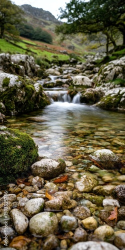 river, flowing, water, rock, stone, stream, waterfall, moss, greenery, outdoors, nature, landscape, lake, district, england, europa, autumn, clear, shallow, bed, mountain, hillside, cascade, pebble, smooth, boulder, grass, vale, tree, scenic, peaceful, tranquil, calm, serene, environment, travel, tour tourism, natural, beauty, fresh, countryside, hiking, walking, explore, adventure, vacation, geology, wilderness