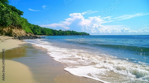 Peaceful sea waves rolling against the shore, leaving room for designs in the foreground