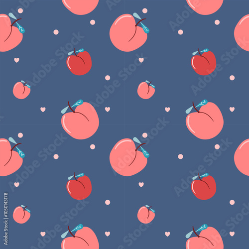 Peach so cute.on polka dot and heart pink color background.pattern seamless vector and illustration.