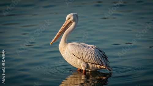 Pelican standing in water, bird wildlife, nature.