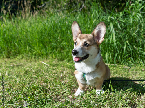 happiness, mammal, grass, playful, shot, cute, life, summer, funny, park, outdoors, pedigree, fun, breed, portrait, green, purebred, 1, canino, enjoy, young, beautiful, domestic, friends, pet, welsh, happy, small, friendship, friendly, puppy, background, adorable, little, obedient, dog, outside, carnivore, animal, play, ground, short, dwarf, smile, smiling, brown, red