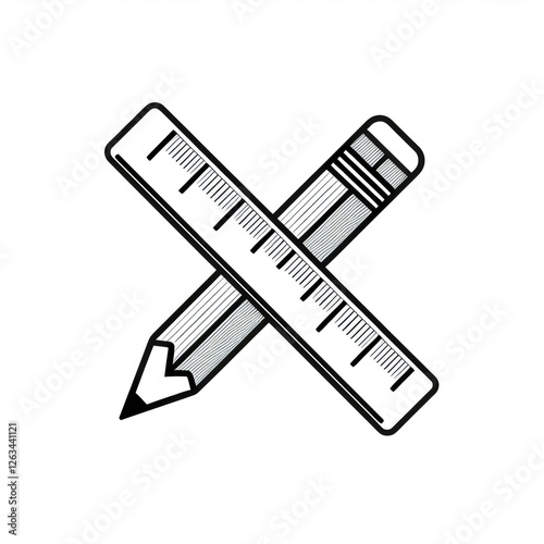 Pencil crossing ruler, creating design tool icon representing creative planning and engineering precision