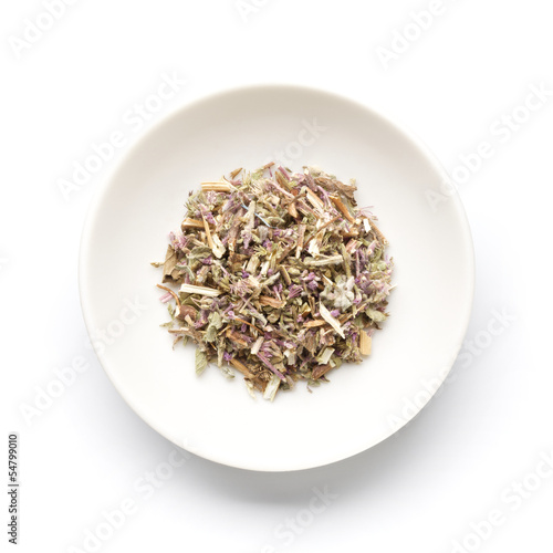 penny, royals, mint, cut, dry, bowl, leaf, herb, spice, plate, stalk, herbal, flower, isolated, flavouring, herbal medicine, isolated on white