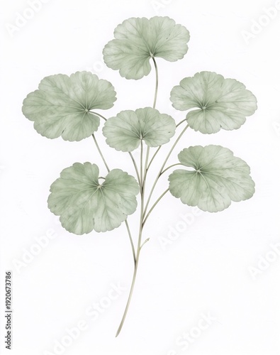 Pennywort leaves centella plant detailed watercolour painting front view botanical layout for food packaging concept