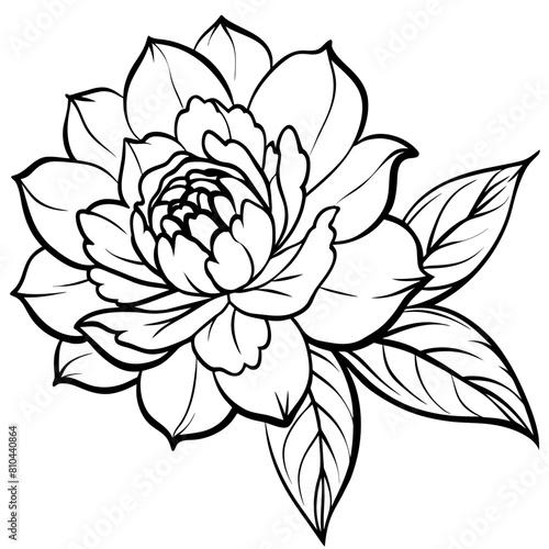 Peony Flower outline illustration coloring book page design, Peony Flower black and white line art drawing coloring book pages for children and adults