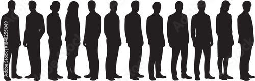 People in different poses, Front view, Side view, Back view, Outline Multi-View Human Figure Vector Line Art CAD Design Vector silhouettes