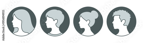 people, silhouette, vector, profile, circular, minimalist, modern, editable, scalable, illustration, graphic, design, branding, print, digital, asset, woman, man, profile, white, grey, background, icon, logotype, character, human, face, portrait, simple, clean, artistic, conceptual, decorative