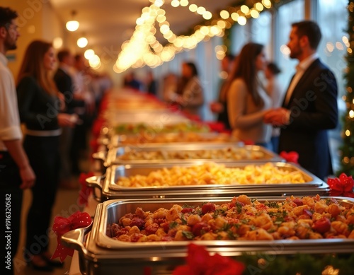 buffet, party, food, catering, event, guest, holiday, dinner, social gathering, celebration, serving, reception, festive, indoor, plate, blurred background, eatery, banquet, meal, occasion, gathering, christmas party, corporate, gala, conference, line, table, widener, service, wait, staff, waiter, host, hostess, menu, main, course, dessert, drink, room, hall, office, family, friends, business