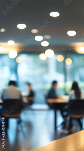 People working in a modern cafe with blurred background