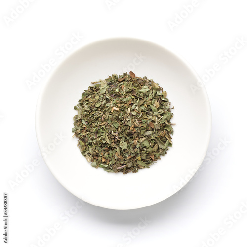 cut, dry, bowl, leaf, herb, spice, plate, stalk, herbal, isolated, flavouring, herbal medicine, isolated on white