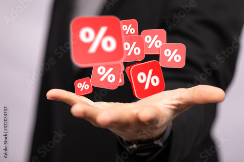 percent, cube, sale, discount, business, offer, man, hand, online, buy, white, promotion, price, store, commerce, market, marketing